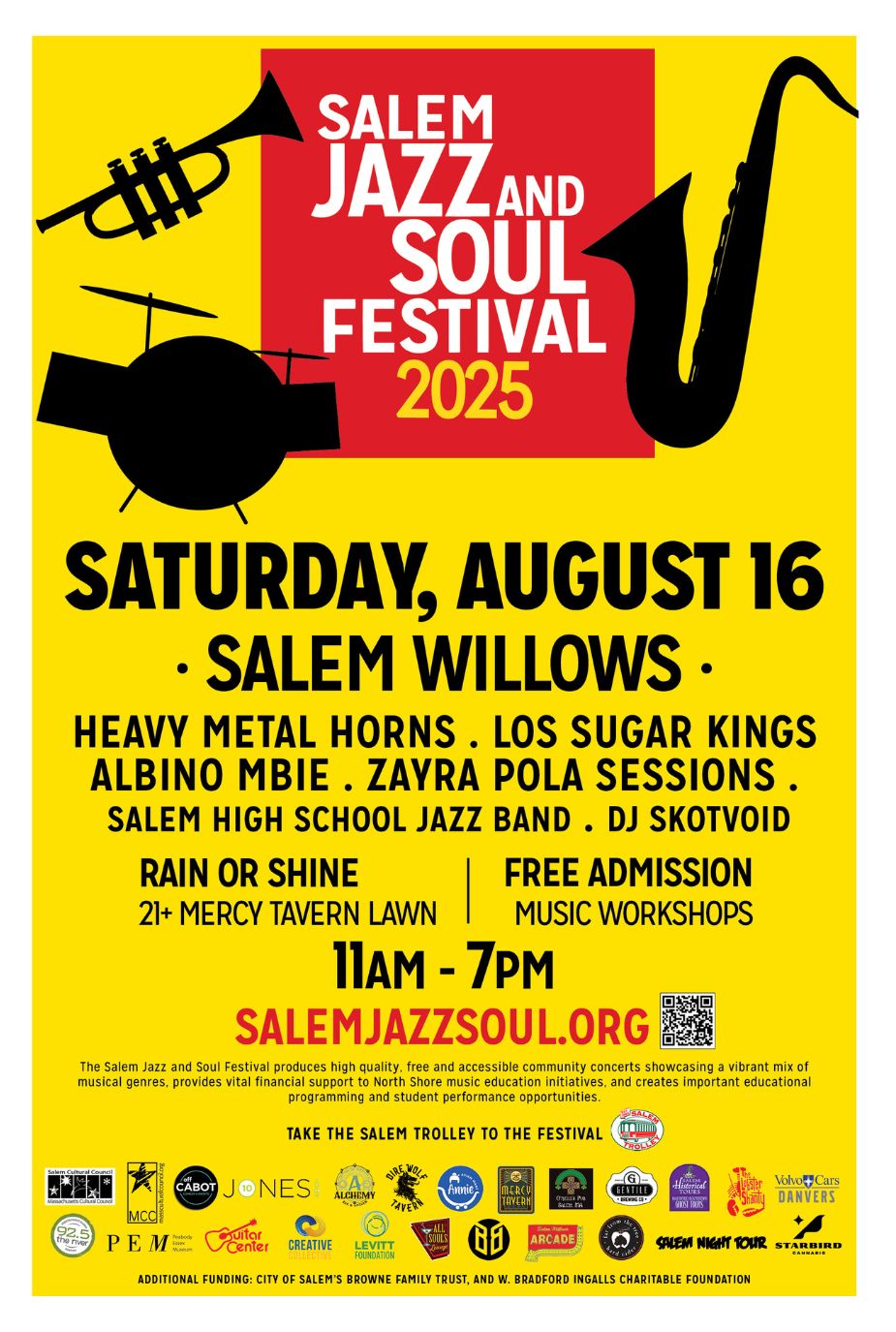 [SALEM, Mass.] – Dig into Salem’s rich and diverse past in a way the textbooks won’t tell you at our free celebration of the town’s history of jazz and soul music legends performing at the ballrooms where arcades stand today! Join us for more musical history in the making at the return of the nonprofit Salem Jazz and Soul Festival for their 18th season event on August 16, 2025 from 11 a.m to 7 p.m. at Salem Willows Park at 165 Fort Avenue in Salem, Mass.